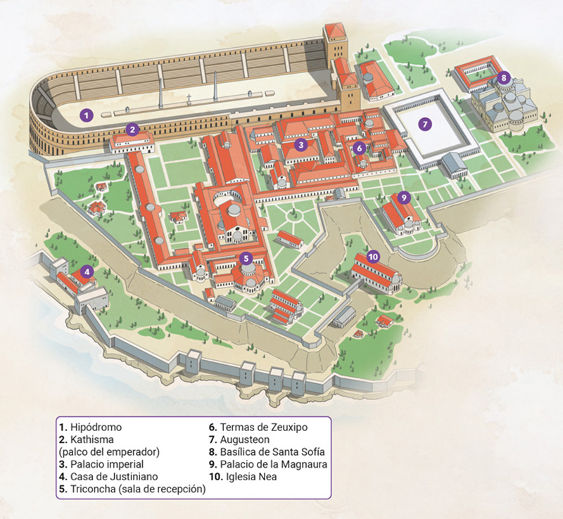El texto sobre Constantinopla, capital del Imperio Romano de Oriente o Imperio bizantino, proporciona al alumnado una información muy valiosa sobre varios aspectos de esta gran ciudad:
