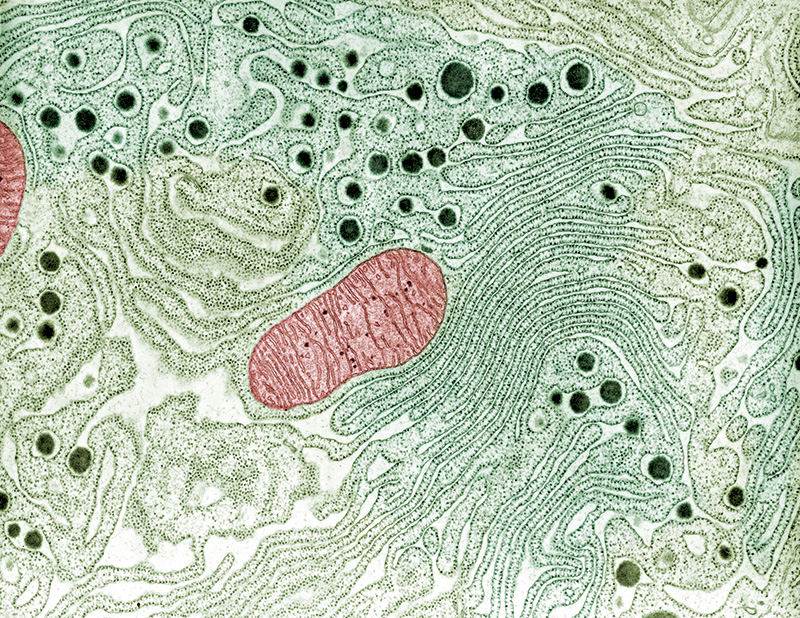 • Las mitocondrias son los orgánulos donde se genera la energía que la célula necesita mediante la respiración celular. Tienen forma ovalada y están formadas por una membrana externa lisa y una membrana interna que presenta múltiples repliegues internos denominados crestas mitocondriales.