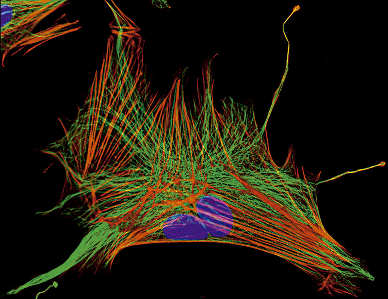 • El citoesqueleto es una red de filamentos de proteína que mantiene la forma de la célula, interviene en su movimiento y juega un papel importante en la división celular al asociarse con los cromosomas.